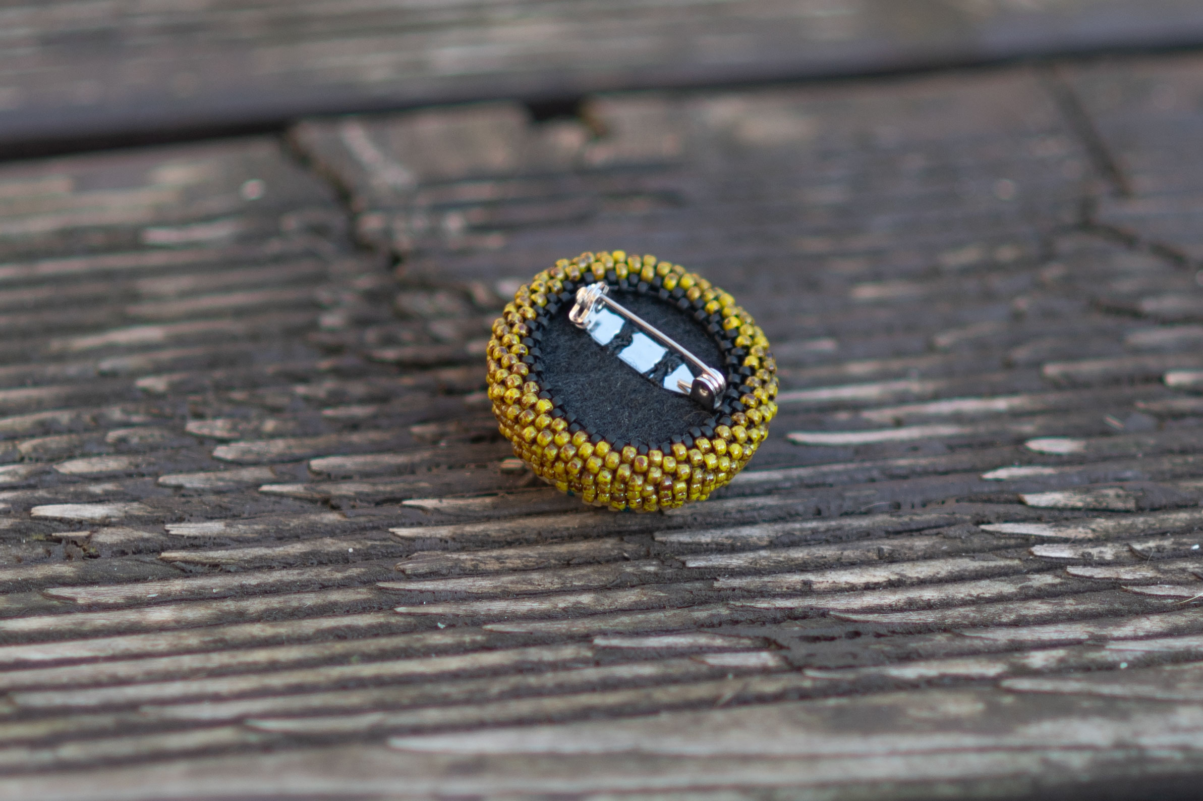 Średnica broszki – około 3,5 cm (z obszyciem)