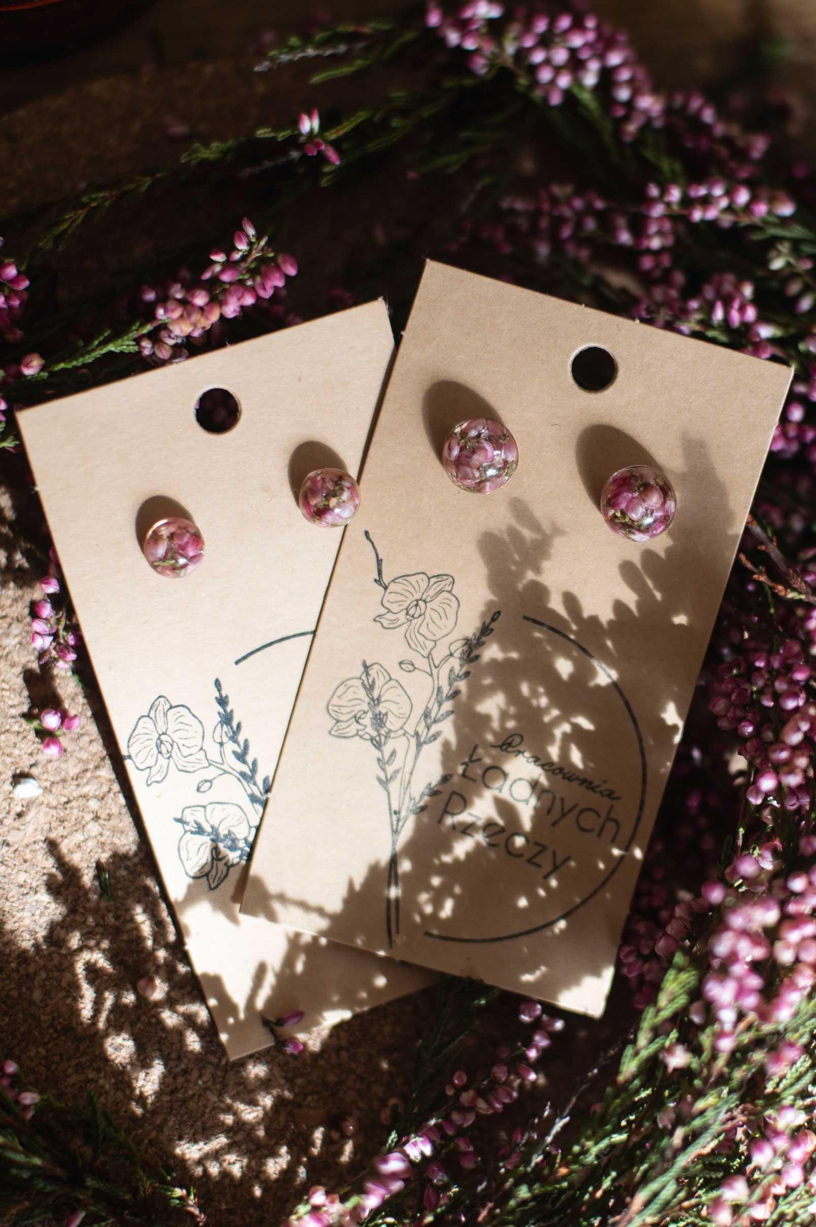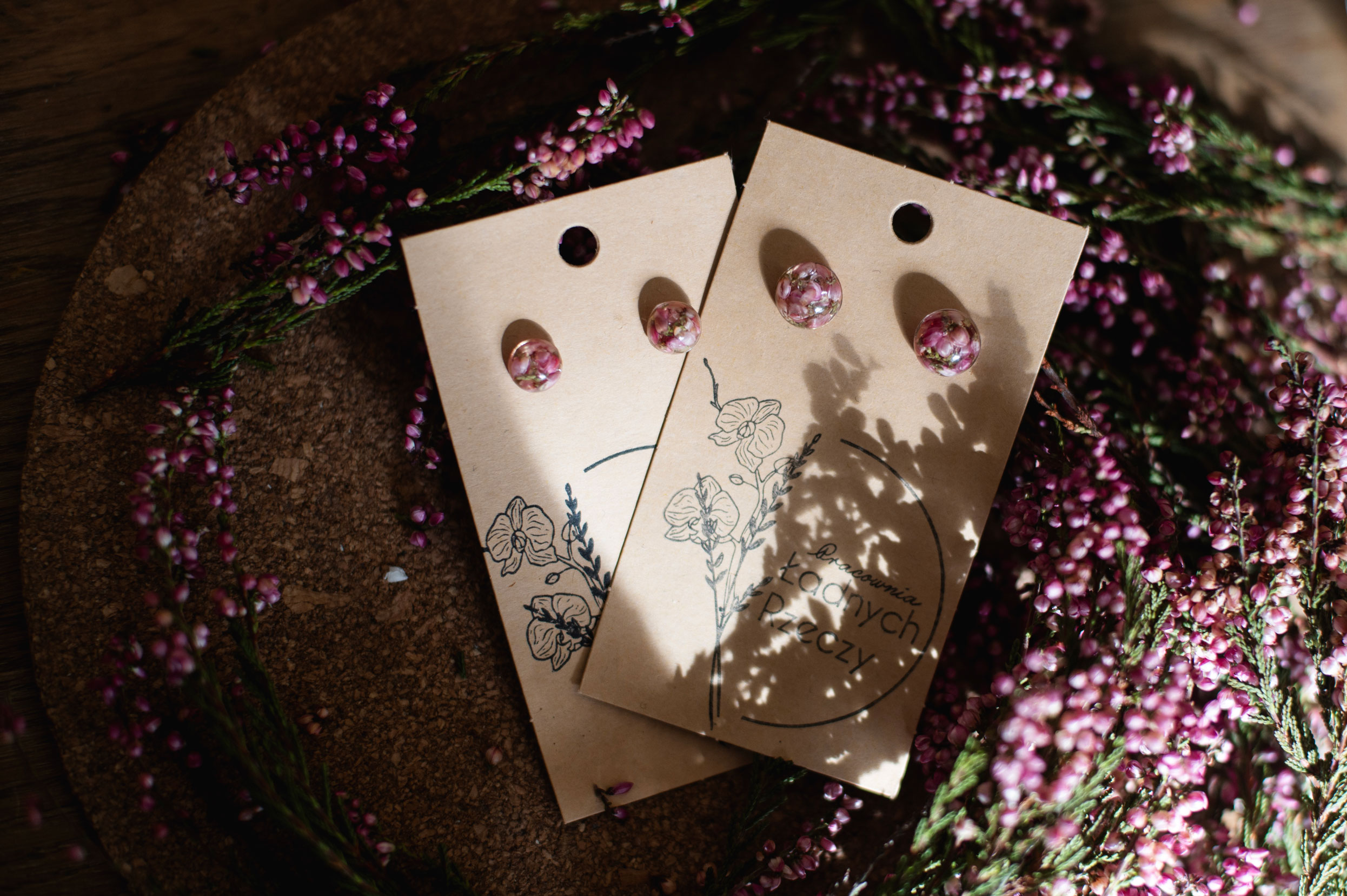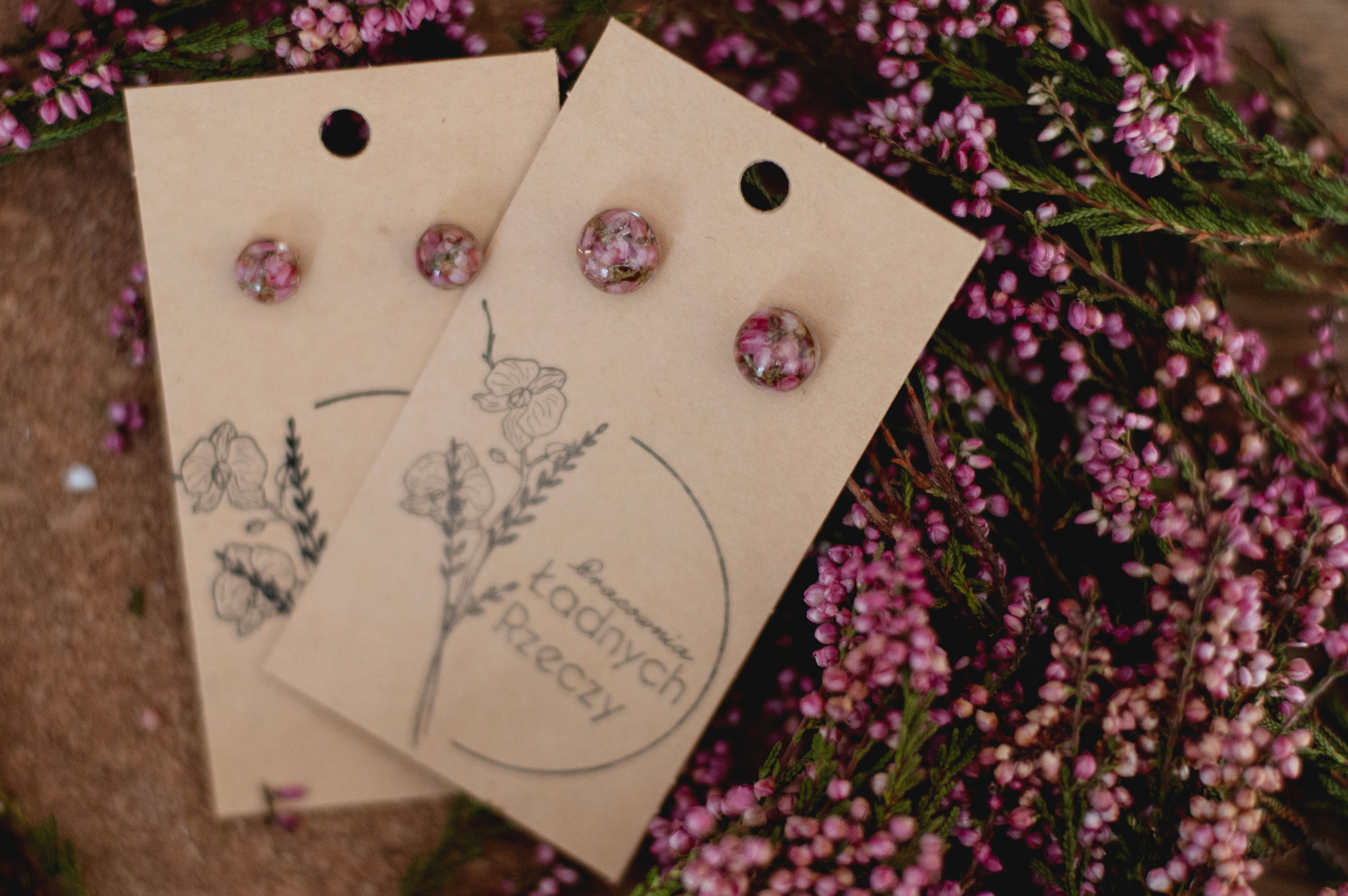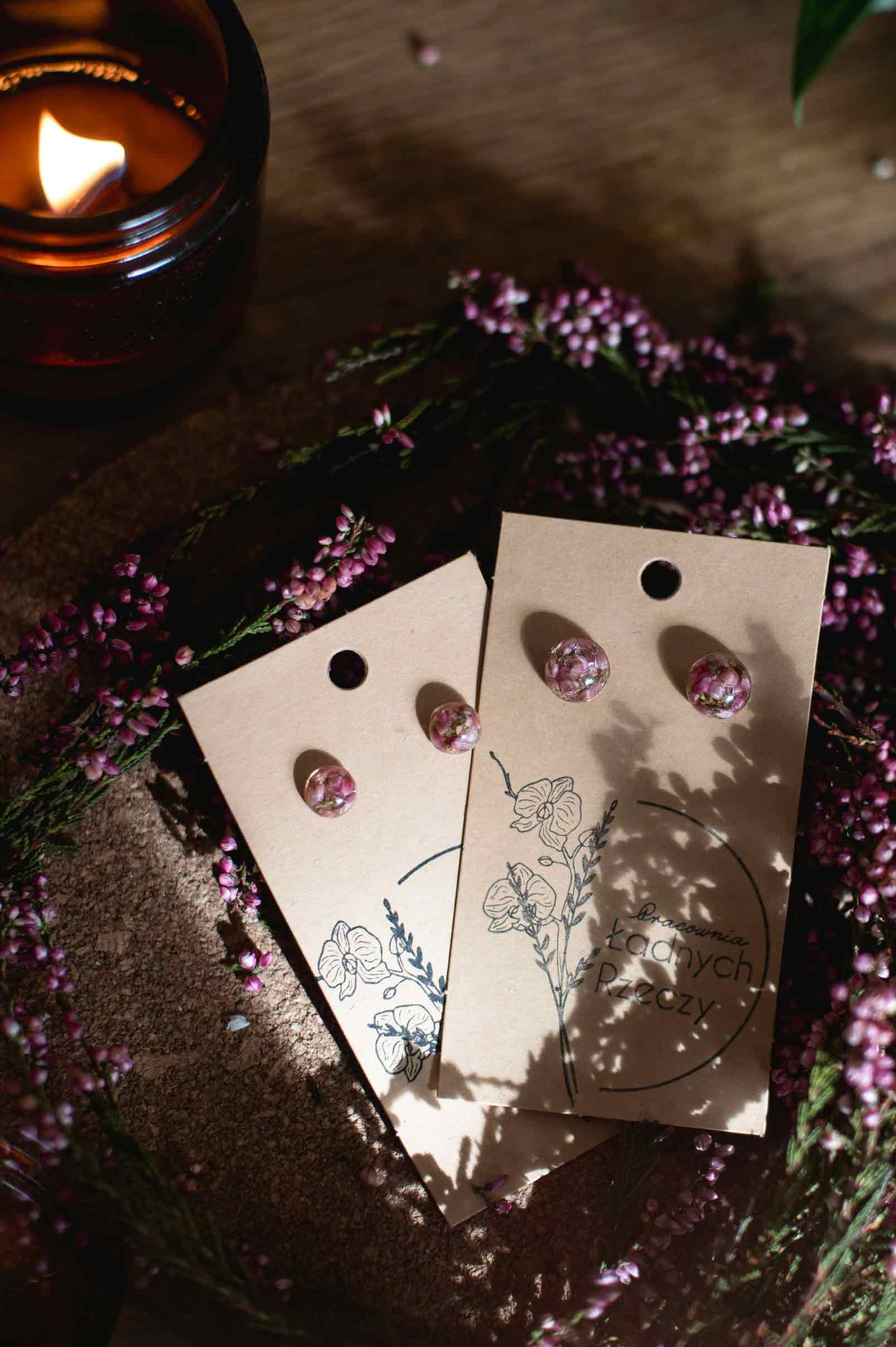 Wrzos zatopiony w żywicy. Sztyft wykonany jest ze stali chirurgicznej.